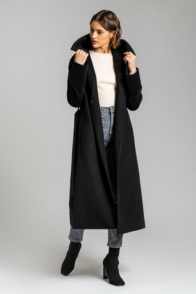 Оверсайз модель демисезонного пальто с прорезными карманами и английским воротником.
