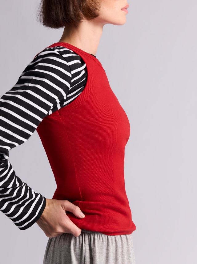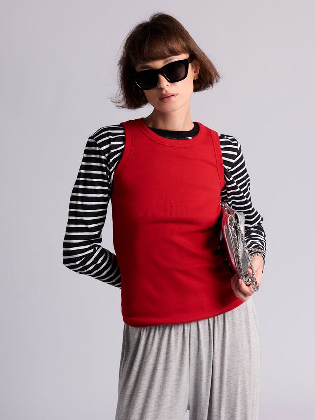 Майка в рубчик пригодится в любой сезон. В жару топ станет основой для простых и стильных образов, а в прохладное время изделие можно носить под пиджаки и свитера.