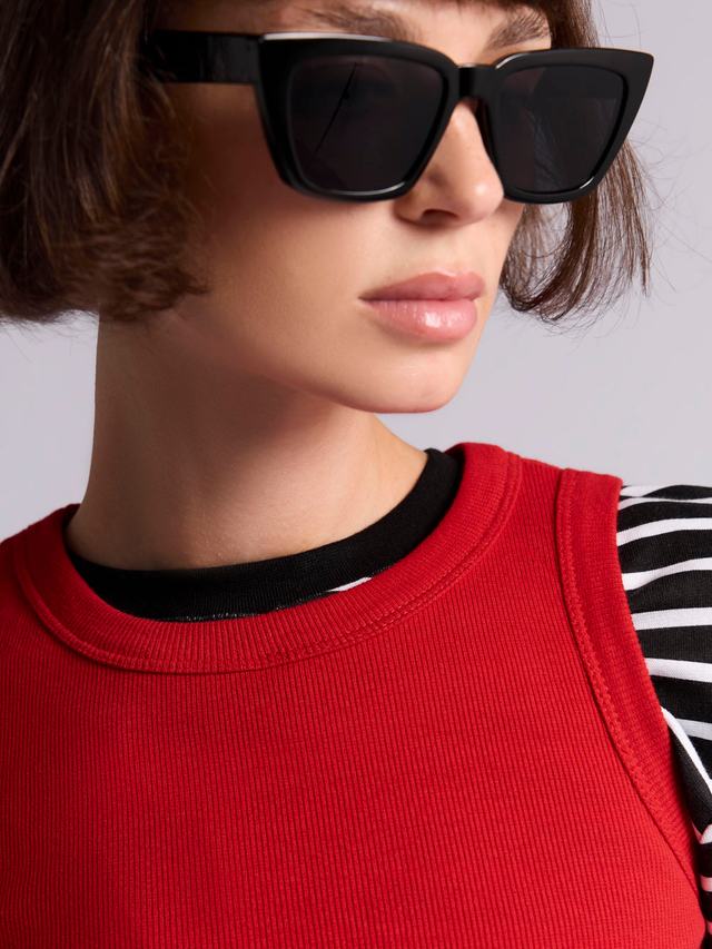 Топ без рукавов приталенного силуэта выполнен из 95% хлопка и 5% эластана.