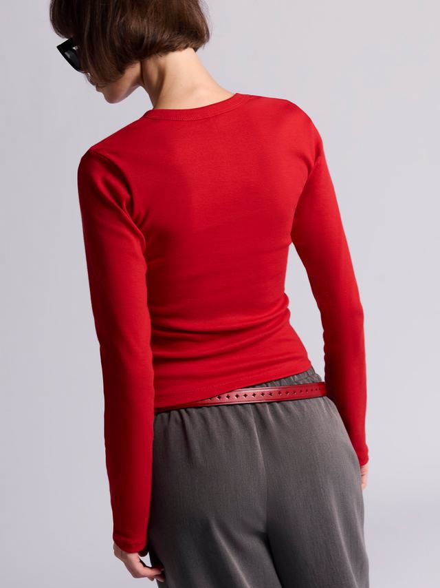Благодаря приталенному силуэту лонгслива все джинсы и юбки будут смотреться более женственно и гармонично.